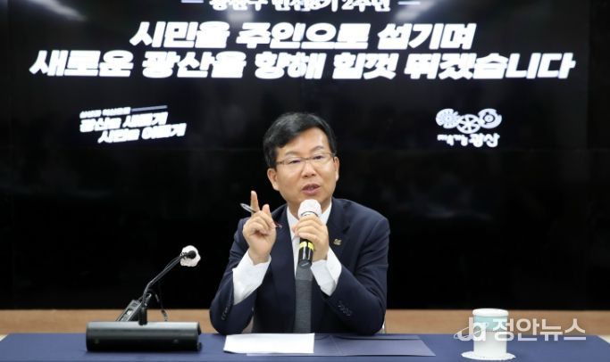 정안뉴스 박상욱 기자 | 박병규 광산구청장이 민선 8기 2주년을 맞아 “시민을 주인으로 섬기며 새로운 광산을 만들어 대한민국을 혁신하고, 사상 최고의 기회를 시민 모두의 이익으로 실현하겠다”고 밝혔다.