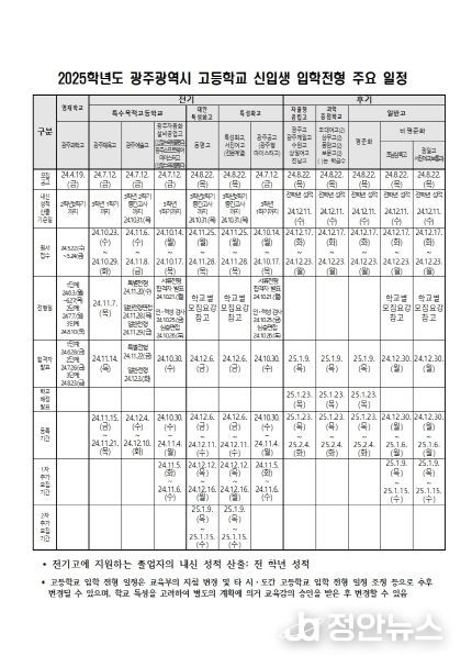정안뉴스 박상욱 기자 | 광주시교육청이 ‘2025학년도 광주광역시 고등학교 신입생 전형요강’을 확정 공고했다.
