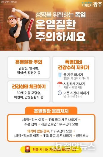 정안뉴스 박상욱 기자 | 광주시는 연일 이어지는 폭염에 온열질환자가 늘어남에 따라 온열질환 예방 건강수칙을 지켜줄 것을 당부했다.