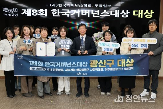 정안뉴스 기자 | 광주 광산구가 시민이 주인이 되는 정책의 우수성과 민관협치 성과로 제8회 한국거버넌스대상 거버넌스 분야에서 대상을 받았다.
