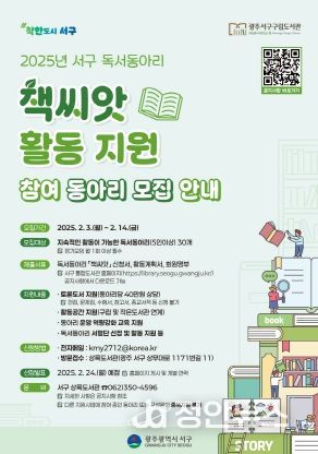 정안뉴스 기자 | 광주광역시 서구는 지역 주민의 독서 문화를 활성화하고 책을 통한 소통을 장려하기 위해 독서동아리 ‘책씨앗’참여팀을 모집한다. 모집 기간은 오는 16일까지며, 총 30개 동아리를 선발한다.