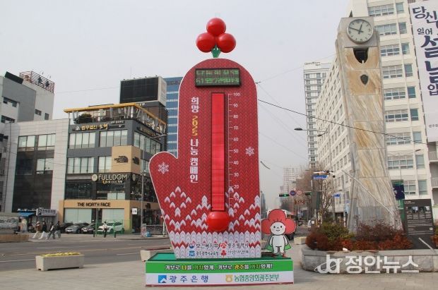 정안뉴스 기자 | 제주항공 여객기 참사, 민생경기 악화 등 어려운 여건에서도 광주시민들의 따뜻한 기부행렬이 이어지면서 ‘광주 사랑의 온도탑’이 116.1도를 기록했다.