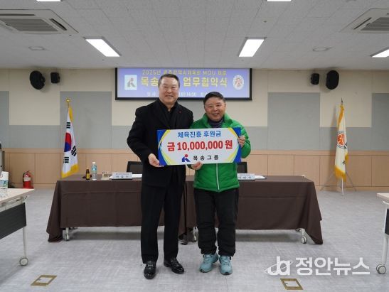 전갑수 체육회장은 “지역의 훌륭한 중견 기업인 목송그룹과 한식구가 돼 기쁘며 지역 및 공동 발전을 위해 협력해 나가길 기대한다.”며 “지역체육 발전은 물론 일자리 창출까지 양 기관이 좋은 성과를 거두는 데 힘을 모으자.”고 당부했다.