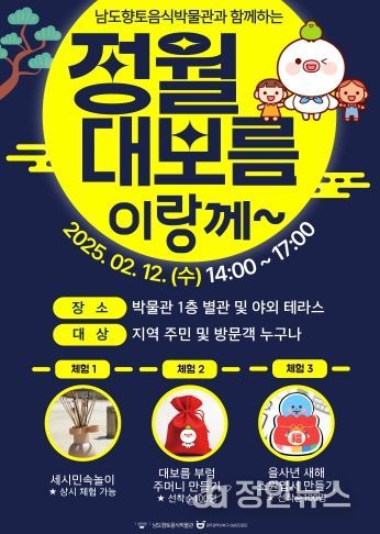 남도향토음식박물관의 2025년 첫 세시풍속 행사인 이번 프로그램은 누구나 참여 가능하며, 대보름 부럼 주머니와 소원엽서 만들기는 선착순으로 현장 접수로 진행된다.