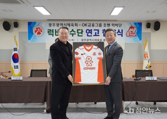 정안뉴스 기자 | 광주광역시체육회가 럭비선수들의 경기력 향상과 럭비 종목 활성화 등 광주럭비 발전을 위해 OK금융그룹 읏맨 럭비단을 광주 연고로 유치했다.