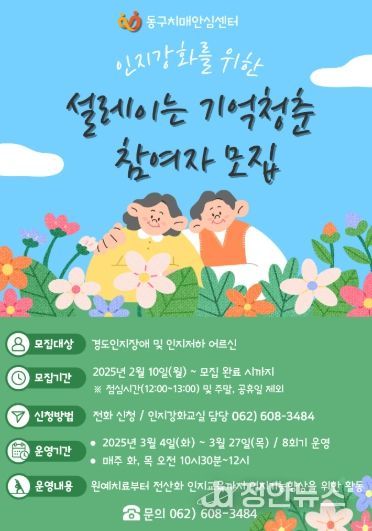 임택 동구청장은 “주민 참여와 협력을 통해 치매 가족의 돌봄 부담을 경감하고 치매 환자와 가족이 지역에서 안심하고 살아갈 수 있는 환경 조성을 위해 최선의 노력을 다하겠다”고 말했다.