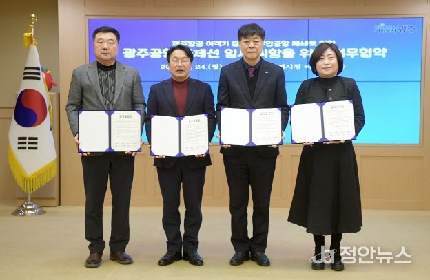 정안뉴스 기자 | 광주광역시는 24일 시청 비즈니스룸에서 광주관광협회, 광주여행사, 전세기 유치업체와 ‘광주공항 국제선 임시취항 업무협약’을 체결했다.