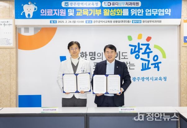 정안뉴스 기자 | 광주시교육청과 유디상무치과의원이 사회적 배려 학생에 대한 의료지원을 위해 손을 맞잡았다.