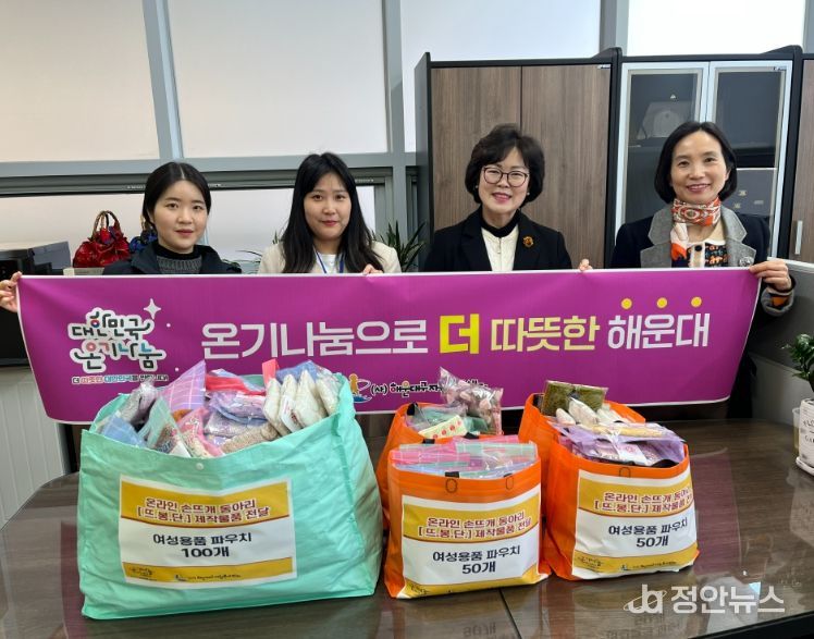 정안뉴스 황정혜 기자 | (사)해운대구자원봉사센터는 지난 20일,‘온라인 손뜨개 봉사단’과 함께 여성용품 파우치 250개를 제작하여 지역아동센터와 해운대구장애인복지관으로 기부했다.