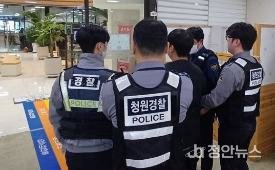 이날 모의훈련은 민원 응대 과정 중 발생할 수 있는 위법행위 상황을 가정하여, 민원인의 폭언과 폭행을 행사하는 상황에서 ▲상급자 적극 개입·진정 유도 ▲사전 고지 후 휴대용 보호장비 녹화·녹음 ▲비상벨 통한 112 호출 및 청원경찰 호출 ▲피해 공무원 보호와 방문 민원인 대피 ▲특이 민원인 제압 및 경찰 인계 등의 현장 대응 절차를 점검했다.