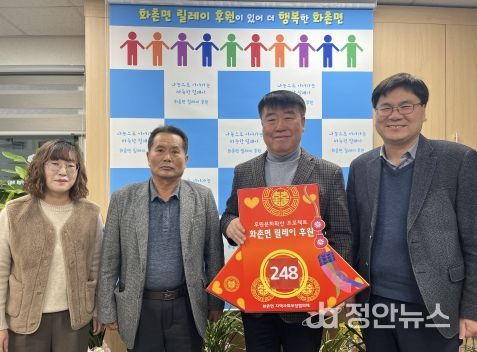정안뉴스 안정주 기자 | 김희철 화촌농협 조합장은 1월 9일 화촌면 행정복지센터를 방문하여, 관내 어려운 이웃을 위해 사용해 달라며 후원금을 기탁했다.