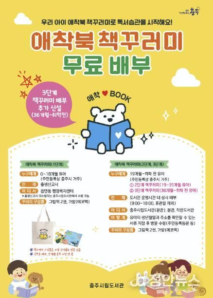 애착북 책꾸러미는 그림책 2권과 에코백으로 구성되며, 충주시립도서관과 산하 도서관에서 연중 선착순으로 무료 배부된다.
