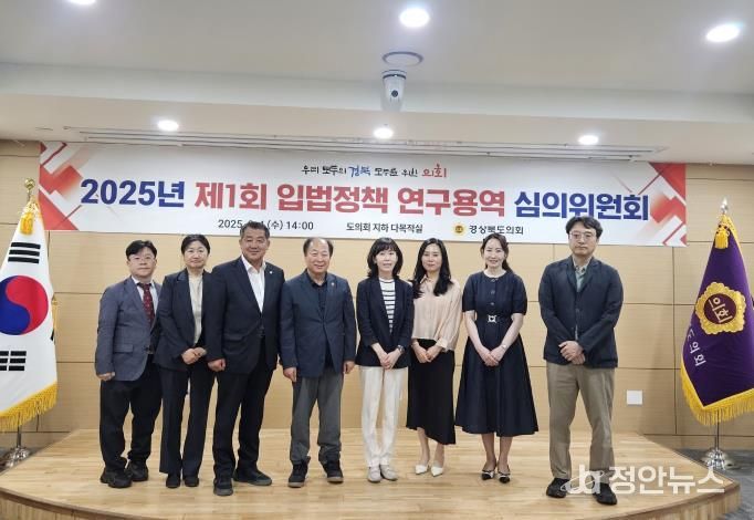 정안뉴스 안정주 기자 | 경상북도의회 입법정책 연구용역 심의위원회는 지난 6월 4일 도의회 다목적실에서 '2025년도 제1차 입법정책 연구용역 심의위원회'를 개최하고, 도의회 의원연구단체가 제안한 총 14건의 연구과제에 대한 심의 및 의결을 진행했다.