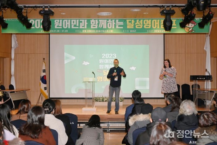 정안뉴스 안정주 기자 | (재)달성교육재단(이사장 최재훈)은 1박 2일간 호텔 아젤리아(비슬산 유스호스텔)에서 관내 초·중학생, 영어 우수 고등학생, 원어민 강사, 학부모 등 150여 명이 참석한 가운데 '원어민과 함께 하는 달성영어캠프'를 개최했다.