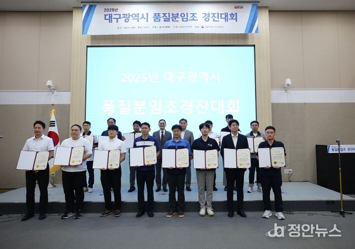 정안뉴스 안정주 기자 | 6월 10일 엑스코에서 개최된 ‘2025년 대구광역시 품질분임조 경진대회’에서 ㈜신정기공 소속 ‘소화제 분임조’ 등 14개 팀이 수상의 영예를 안고 8월 25일부터 제주도에서 열리는 전국대회 출전하게 됐다.
