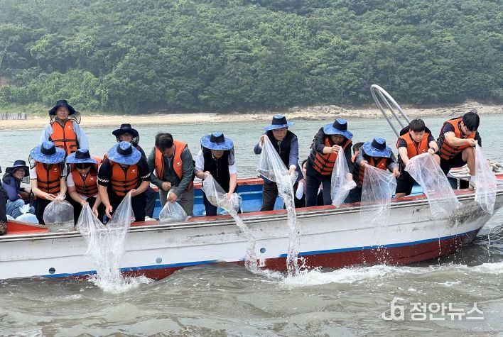정안뉴스 안정주 기자 | 전남도의회 농수산위원회 김문수 위원장(더불어민주당, 신안1)은 6월 25일 신안군 압해읍 송공항 앞 해역에서 열린 ‘갑오징어·주꾸미 종자 방류 행사’에 참석했다.