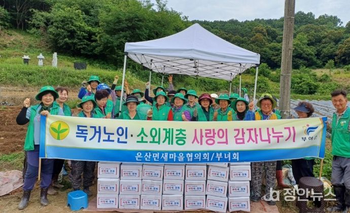 정안뉴스 황도연 기자 | 부여군 은산면 남여 새마을지도자협의회(협의회장 이우복, 부녀회장 김혜숙)는 은산면 시가지 환경정화 및 지역 내 어려운 이웃을 돕기 위한 사랑의 감자 수확 활동을 추진했다고 26일 밝혔다.