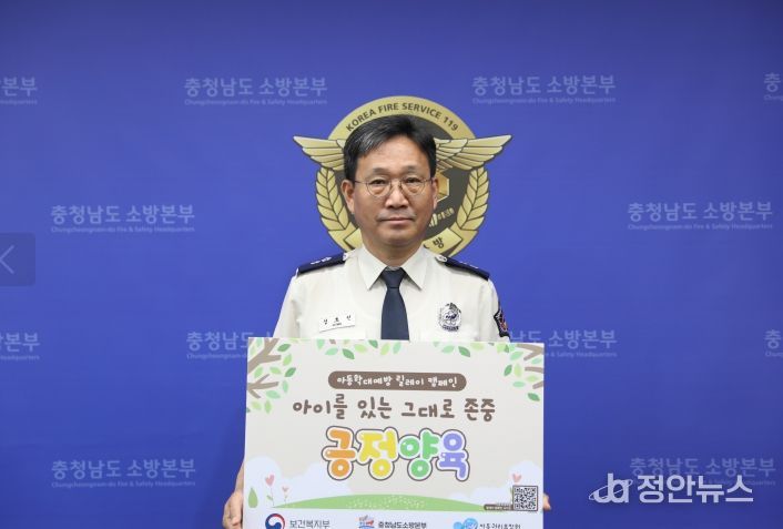 정안뉴스 황도연 기자 | 충남소방본부는 성호선 소방본부장이 ‘아동학대 예방 릴레이 캠페인’에 동참해 아이들의 안전과 행복을 위한 적극적인 관심과 노력을 촉구했다고 26일 밝혔다.