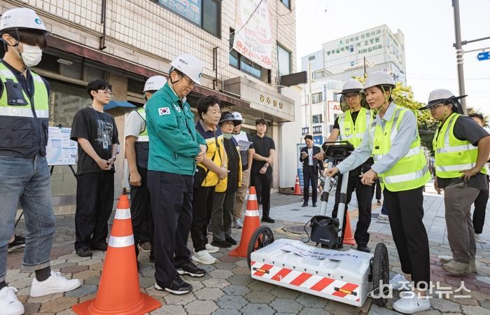 이날 현장에는 김경호 구청장을 비롯해 관계 부서 공무원, 전문가, 주민들이 함께 참여해 장비의 실제 작동 과정을 직접 확인했다. 지표투과레이더(GPR) 장비는 전자파를 이용해 지하 2m 이내의 구조물, 공동, 매설물을 비파괴 방식으로 탐지할 수 있어, 도로 함몰과 같은 지반침하 사고를 사전에 예방하는 데 효과적인 최첨단 장비다.