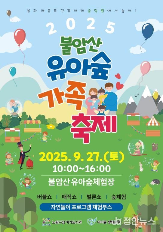 정안뉴스 안정주 기자 | 서울 노원구는 오는 9월 27일 불암산 유아숲체험원 일대에서 ‘제12회 유아숲 가족축제’를 개최한다고 밝혔다.