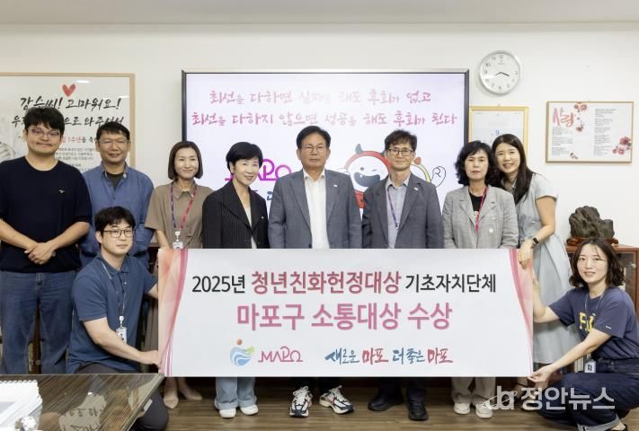 정안뉴스 안정주 기자 | 마포구는 지난 13일, 국회 사무처 소관 (사)청년과미래가 주관한 ‘2025년 제8회 청년친화헌정대상’ 소통부문에서 대상을 수상했다.