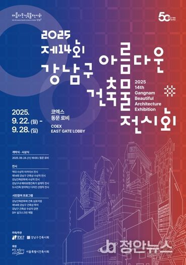 정안뉴스 안정주 기자 | 꿈이 모이는 도시, 미래를 그리는 강남구가 오는 9월 22일부터 28일까지 코엑스 동측 로비에서 ‘제14회 강남구 아름다운 건축물 전시회’를 연다. 전시 기간 중인 24일 오후 4시에는 시상식과 함께 ‘건축심포지엄’이 개최된다.