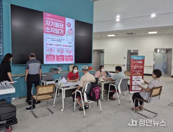 정안뉴스 안정주 기자 | 인천시 중구는 ‘9월 심뇌혈관질환 예방 관리 주간’을 맞아 지난 3일부터 24일까지 매주 수요일에 영종복합문화센터와 영종국민체육센터에서 ‘자기 혈관 숫자 알기 레드서클 캠페인’을 성황리에 진행했다.