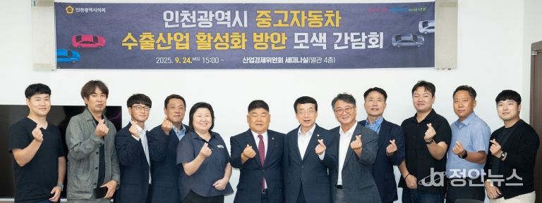 정안뉴스 안정주 기자 | 인천시의회 박창호 의원(국·비례)은 24일 오후 3시, 시의회 산업경제위원회 세미나실에서 인천광역시 중고자동차 수출산업 활성화 방안 모색을 위한 간담회를 개최했다.