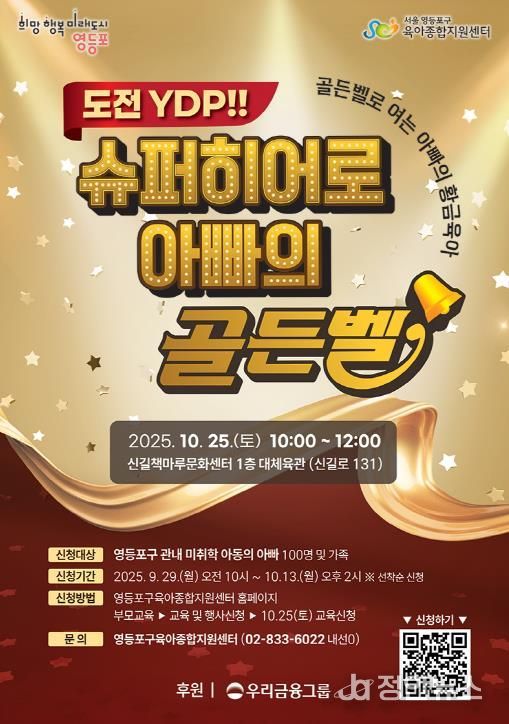 정안뉴스 안정주 기자 | 영등포구가 아빠들의 육아 지식을 겨루는 ‘도전! 아빠 육아 골든벨’을 개최하고 참가자를 모집한다고 밝혔다.