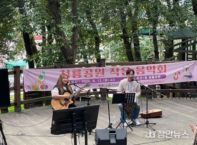 이번 행사는 ‘숲속 풍경과 어우러지는 소규모 음악 공연’을 주제로 주민들에게 일상 속 문화 참여 기회를 제공하고, 음악을 통해 지친 일상에 여유와 휴식을 즐길 수 있도록 마련됐다.