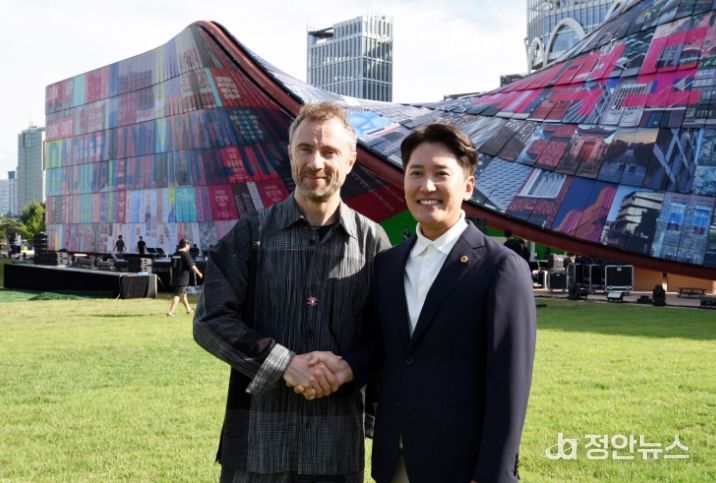 정안뉴스 안정주 기자 | 서울특별시의회 주택공간위원회 이민석 부위원장(국민의힘, 마포1)은 25일 개막을 하루 앞둔 '제5회 서울도시건축비엔날레' 현장을 찾아 최종 준비 상황을 점검했다. 이날 점검에는 이번 비엔날레의 총감독을 맡은 토마스 헤더윅(Thomas Heatherwick)이 함께했다.