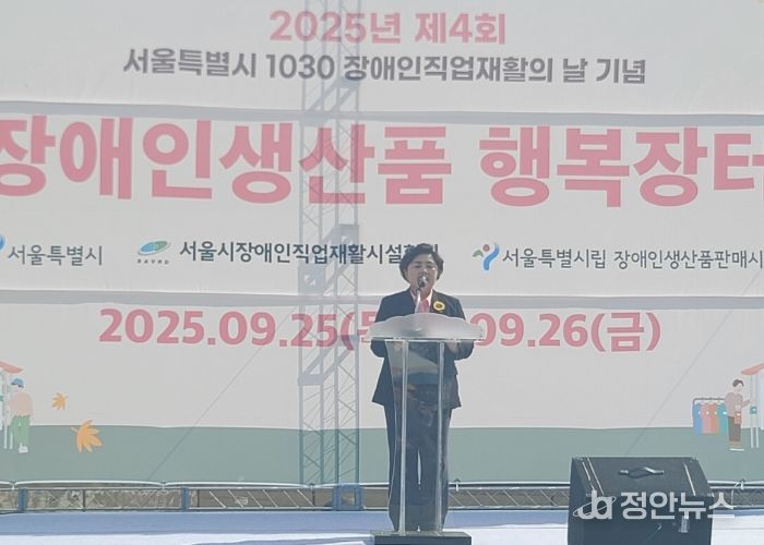 정안뉴스 안정주 기자 | 서울특별시의회 보건복지위원회 김영옥 위원장(국민의힘, 광진3)은 9월 25일부터 26일까지 양일간 반포한강공원 달빛광장에서 개최되는 『2025년 제4회 장애인직업재활의 날 기념 행복장터』에 참석해 장애인과 비장애인이 함께하는 화합의 장을 축하했다.