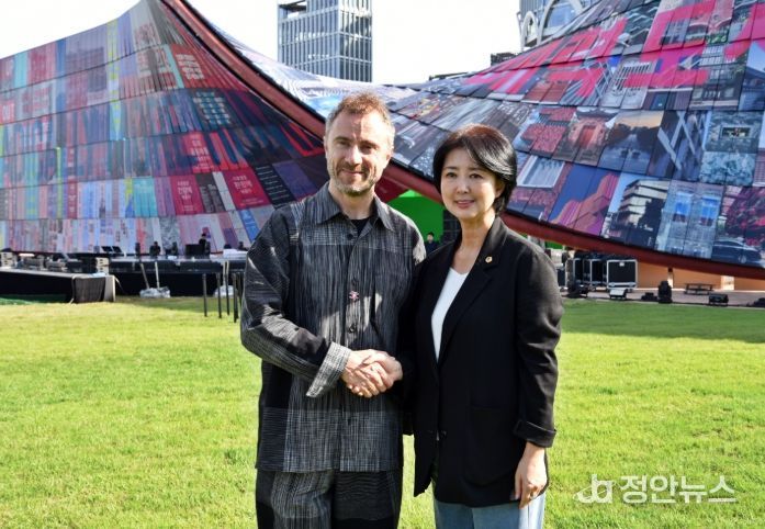 정안뉴스 안정주 기자 | 제5회 서울도시건축비엔날레 개최를 하루 앞둔 9월 25일 옥재은 서울시의원(중구2, 국민의힘)은 세계적인 건축가이며 총감독인 토마스 헤더윅과 함께 이번 비엔날레의 주요 행사장 중 하나인 송현광장(열린송현녹지광장)을 방문하여 현장 점검에 나섰다.