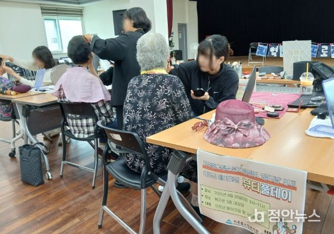 정안뉴스 안정주 기자 | 인천 미추홀구학교밖청소년지원센터는 지난 26일 직업훈련을 받은 학교 밖 청소년 6명이 어르신을 대상으로 메이크업과 추억을 남길 수 있는 기념사진 촬영을 진행했다.