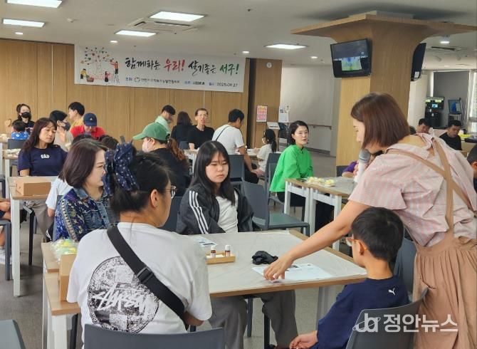이번 행사는 ‘함께 하는 우리! 살기 좋은 서구!’ 2회차 사업으로, 지난 회차 참여자들의 의견을 적극 수렴하여 단순 문화 체험을 넘어 가족 간 소통과 정서적 안정을 도모하는 의미를 담아 체험 활동 전 인형극을 관람하며 웃음과 감동을 나누고, 디퓨저 만들기, 향기 가랜드 만들기를 통해 자신만의 향기를 담은 작품을 완성했다.