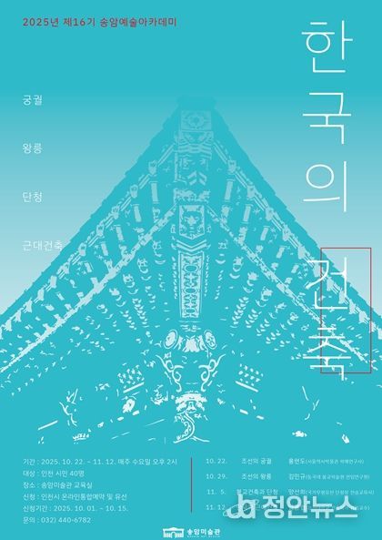 첫 회차인 10월 22일 ‘조선의 궁궐’을 시작으로 10월 29일 ‘조선의 왕릉’, 11월 5일 ‘불교 건축과 단청’, 11월 12일 ‘한국(인천)의 근대건축’ 순으로 진행한다.