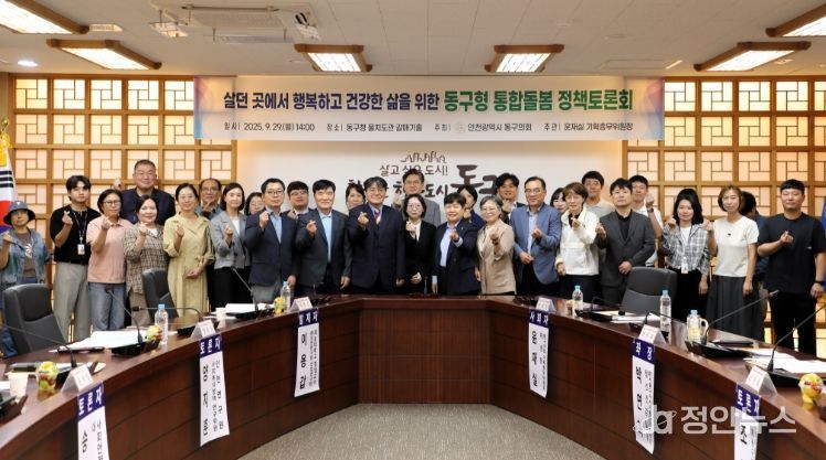 정안뉴스 안정주 기자 | 인천 동구의회는 지난 29일 동구청 물치도관 갈매기홀에서 『동구형 통합돌봄 정책 토론회』를 개최해 초고령사회에 대비한 선제적 지원책 마련에 나섰다.