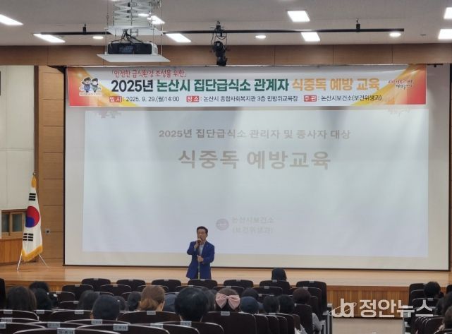 정안뉴스 황도연 기자 | 논산시는 29일 종합사회복지관에서 학교·복지시설·산업체 등 집단급식소 관계자 200여 명을 대상으로 식중독 예방 교육을 실시했다.
