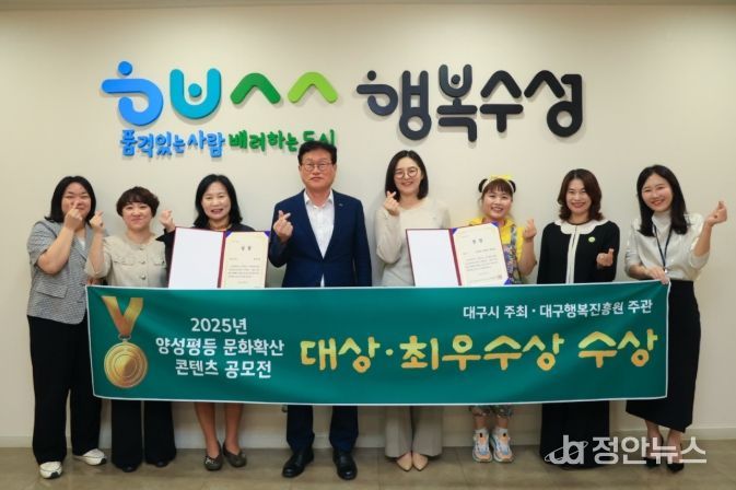정안뉴스 안정주 기자 | 대구 수성여성클럽은 성평등콘텐츠 제작교실 수료생들이 '2025 양성평등 문화확산 콘텐츠 공모전'에서 대상과 최우수상을 동시에 수상했다고 29일 밝혔다.