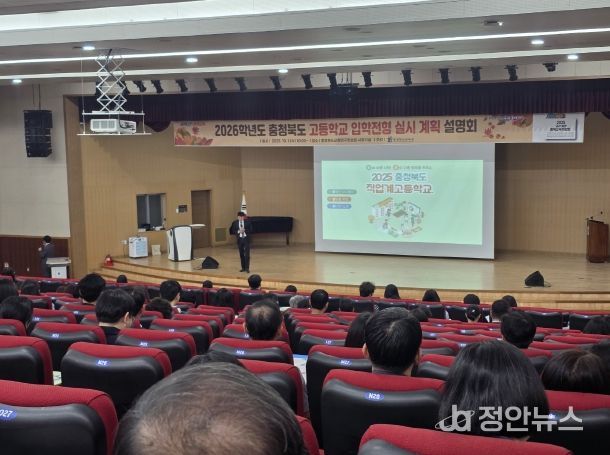 정안뉴스 황은경 기자 | 충청북도교육청은 1일, 충북교육청 사랑관 세미나실과 교육연구정보원 시청각실에서 중학교 교감 및 3학년 교사, 학교장 전형교 교감 및 업무담당교사, 교육지원청 업무담당 장학사 등을 대상으로, 2026학년도 충청북도 고등학교 입학전형 실시계획 설명회를 개최했다.