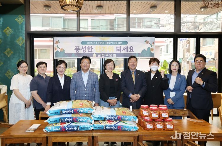 정안뉴스 안정주 기자 | 서울특별시 금천구의회는 민족 최대의 명절 추석을 앞두고 지난 30일 사단법인 공간자리(대안학교), 금천소방서, 사랑채요양원을 방문해 근무자들을 격려하고, 위문품을 전달하는 등 지역사회 나눔 실천에 앞장섰다.