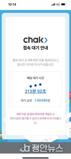 10월 1일 오전 기준, CHAK 앱 접속 대기 화면에는 최대 140,496명이 동시에 접속하는 장면이 확인됐으며, 예상 대기시간은 212분에 달했다. 이는 지역화폐 앱에서는 보기 드문 규모로, 아산페이가 전국민이 주목하는 대표 민생정책으로 자리매김했음을 보여준다.