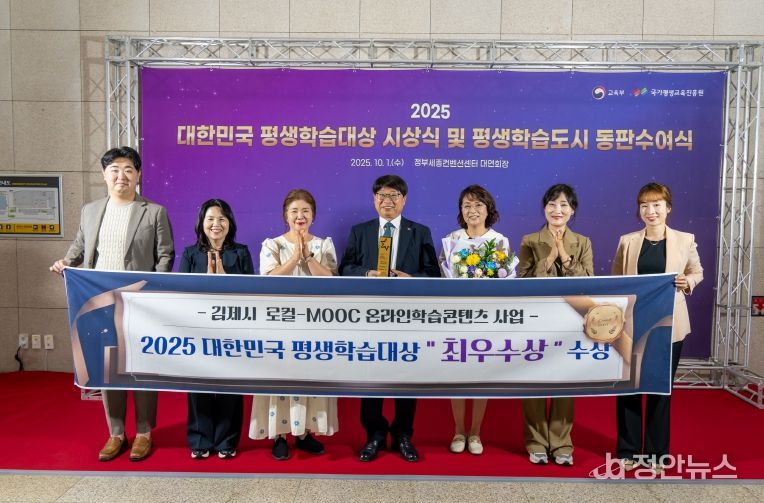 정안뉴스 안정주 기자 | 김제시가 생활 속 평생학습을 실천하고 있는 우수사례를 발굴해 시상하는 '제22회 대한민국 평생학습대상'에서 '디지털 학습시대 무형의 학습자산을 만드는 김제형 로컬-MOOC 구축사업'으로 올해의 평생학습사업 최우수상을 받았다.