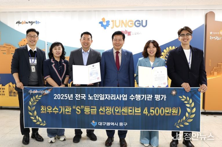 정안뉴스 안정주 기자 | 대구 중구는 중구시니어클럽이 노인일자리사업 수행기관 평가에서 4년 연속 최우수기관으로 선정됐다고 밝혔다.
