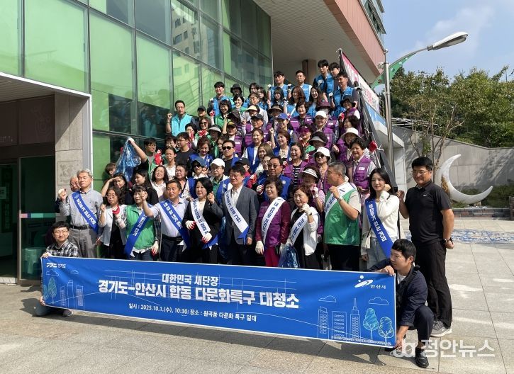 정안뉴스 안정주 기자 | 경기도는 1일 안산시 원곡동 다문화특구 일대에서 안산시, 수도권대기환경청, 지역 주민들과 함께 ‘대한민국 새단장’ 캠페인의 일환으로 합동 환경정비 활동을 벌였다.