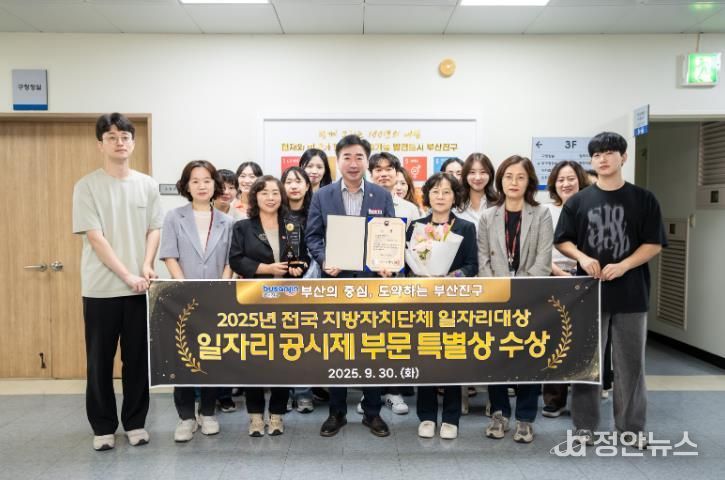 정안뉴스 황정혜 기자 | 부산 부산진구가 고용노동부 주관 ‘2025 전국 지방자치단체 일자리대상’ 지역일자리 목표 공시제 부문에서 특별상을 수상했다고 밝혔다.