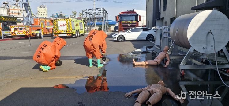 정안뉴스 안정주 기자 | 전북특별자치도소방본부는 지난 1일 119특수대응단 화학구조대 청사에서 유해화학물질 누출 사고 대응 역량 강화를 위한 합동훈련을 실시했다.