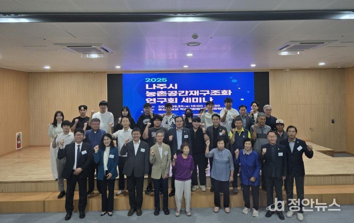 정안뉴스 안정주 기자 | 나주시의회 의원연구단체 ‘농촌공간 재구조화 과정 연구회’(대표의원 김강정)가 주최한 세미나가 지난 29일 빛가람동 동신대한방병원에서 읍면동 주민들과 유관기관 단체장, 언론인을 비롯한 관계자 등이 참석한 가운데 개최됐다.