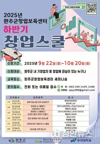 모집 기간은 20일까지이며, 완주군 창업보육센터에 전화 또는 이메일을 통해 신청이 가능하다.