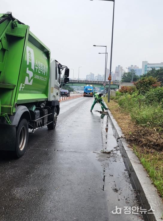정안뉴스 안정주 기자 | 수원특례시 영통구는 '대한민국 새단장' 캠페인의 일환으로 민족 최대의 명절 추석을 맞아 고향을 찾는 귀성객들에게 쾌적하고 안전한 도로 환경을 제공하고자 영동고속도로 동수원나들목 진출입로 집중 환경정비를 실시했다.